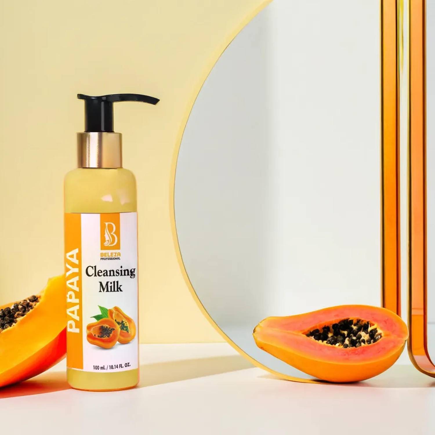 Transform your skincare routine with Beleza Professional Papaya Cleansing Milk, a luxurious 100 ml cleanser formulated with pure and fresh papaya extract. This gentle cleansing milk harnesses the power of botanical ingredients to effectively remove makeup, dirt, and impurities while nourishing your skin. Our AYUSH certified formulation guarantees high quality, and it has been dermatologically tested to ensure safety for all users, including men and women.